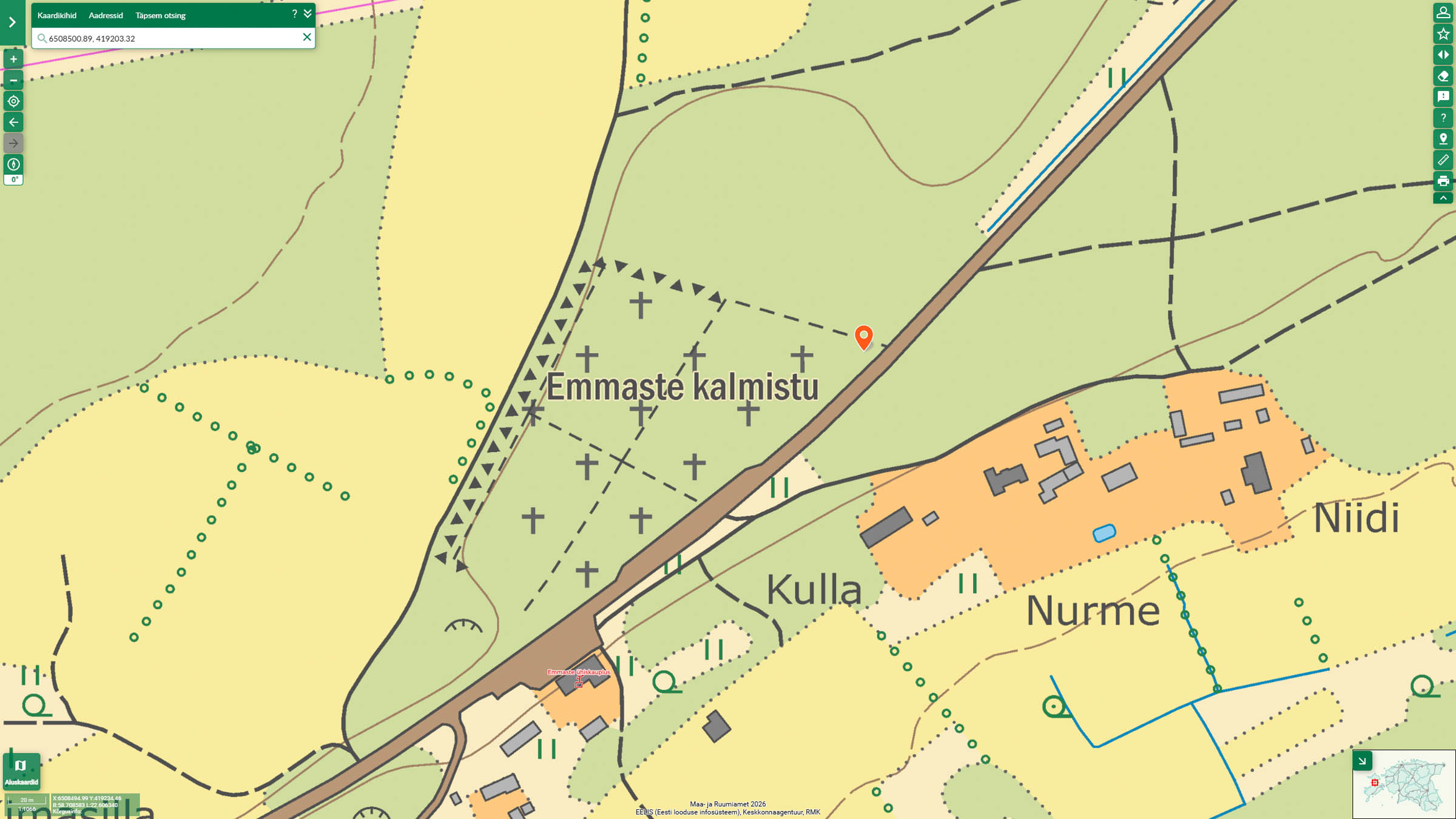 Punkri asukoht Muda metsas vallavanem Tohvri heinamaal.
